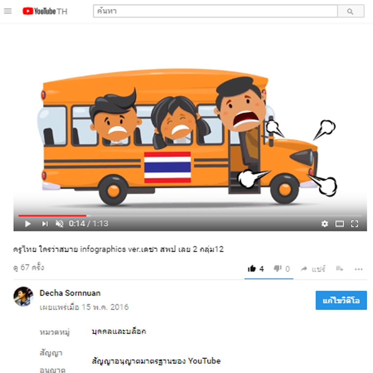 การทำแอนิเมชันอินโฟกราฟิก เรื่อง ครูไทยใครว่าสบาย จัดทำโดย ครูเดชา สอนนวล